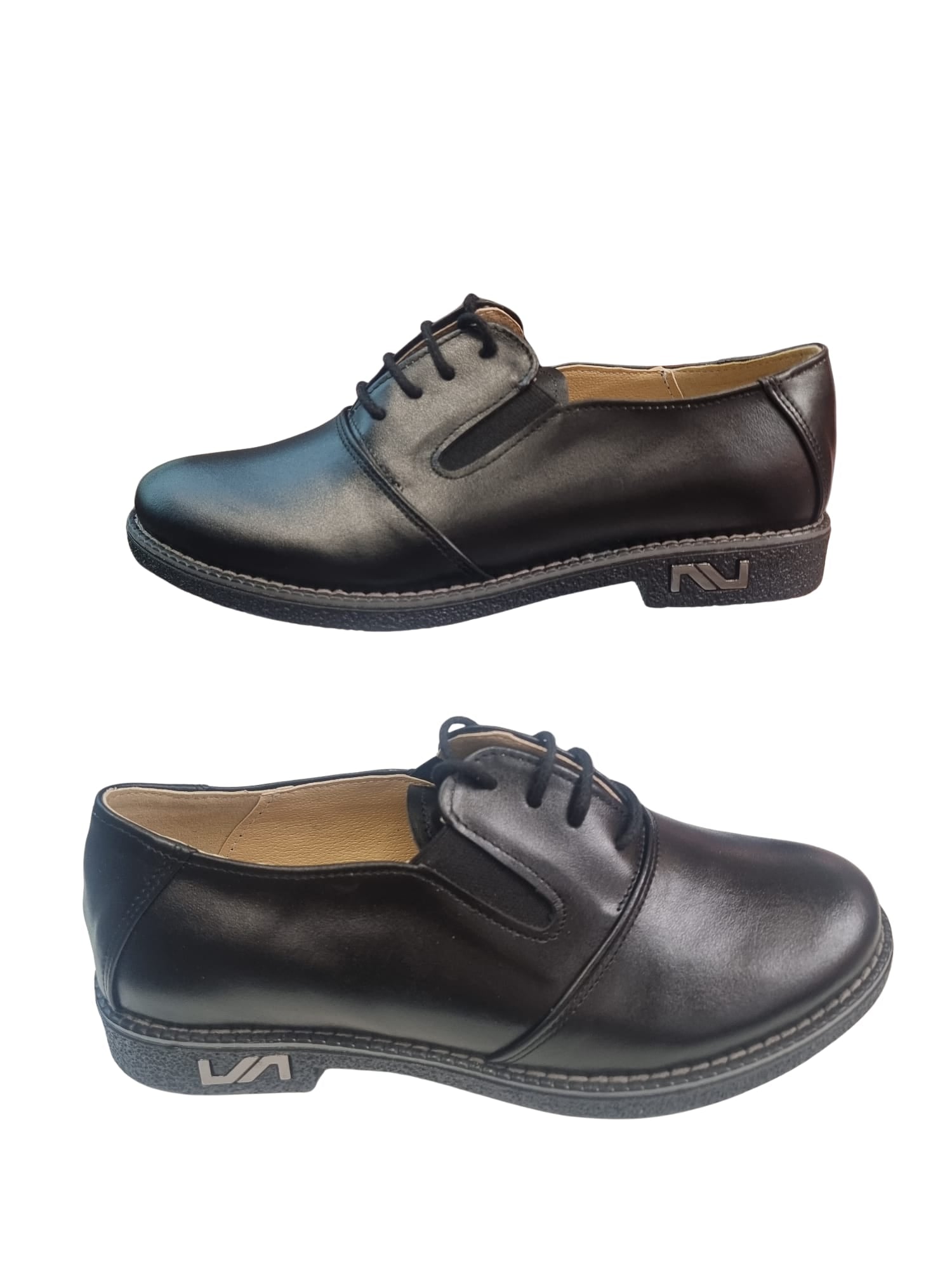 Pantofi casual pentru femei confecționați din piele naturală neagră, cu un design simplu și modern. Talpa joasă inscripționată VA oferă un plus de stil. Sistemul cu șiret îi face practici pentru purtare zilnică – un model versatil, ușor de integrat în ținutele tale.